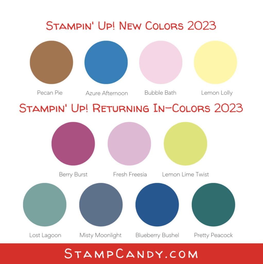 This is so exciting! Stampin’ Up! has done a color refresh for the 2023-2024 Annual Catalog. What does that mean? They retire some colors and bring in some new ones (or returning favorites from previous in-color collections). Our last color refresh was in 2018, so we were due!