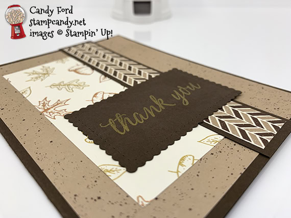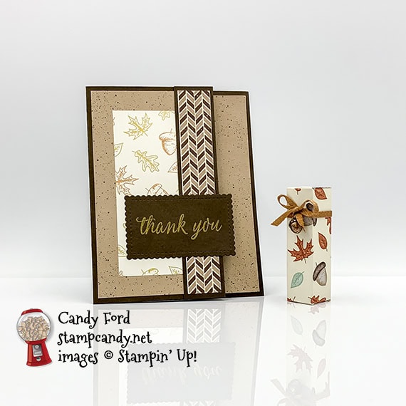 Autumn is almost here, and today’s project is a thank you card that’s all about the season. I used the Beautiful Autumn stamp set and Stitched So Sweetly Dies to create this simple fun fold card. I also made a coordinating little lip balm gift box, which I’ll share with you in a few days (you can see a sneak peek of it below.)