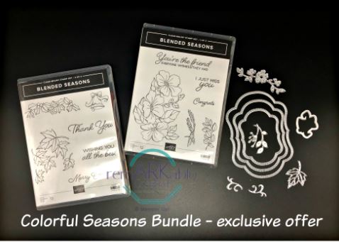 - Save 10%! Blended Seasons BUNDLE – BLENDED SEASONS STAMP SET + STITCHED SEASONS FRAMELITS DIES – Wood-mount #149893 @ $77.25, Clear-mount #149894 @ $64.75