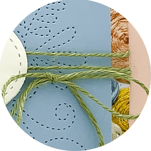 - sentiment adhered over the twine using Tear & Tape – I also put a piece of Tear & Tape between the twine and DSP to hold it in place