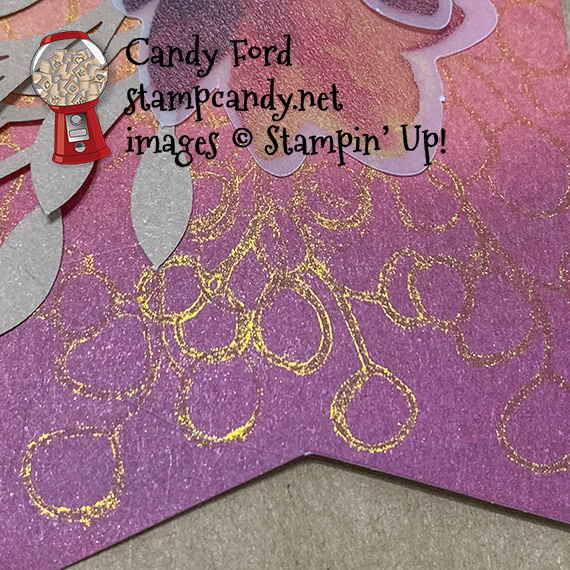 - berry sprigs in Golden Glitz and Celestial Copper Delicata Metallic inks onto the note card front and the tag front