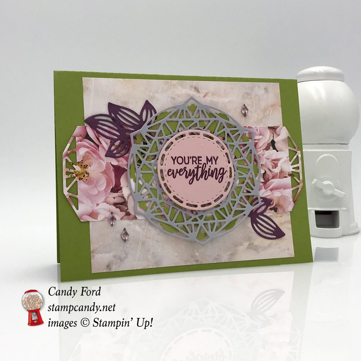 - Petal Promenade Designer Series Paper (DSP) cut to 4-1/2″ x 4″ (pink marble)