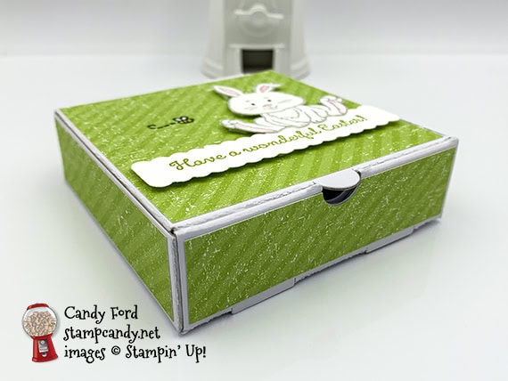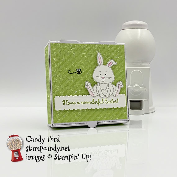 - sentiment and rabbit adhered onto the DSP layer on the top of the box using Stampin’ Dimensionals