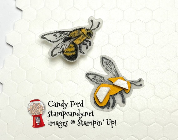 - Mango Melody bee parts glued onto the backs of the vellum bees