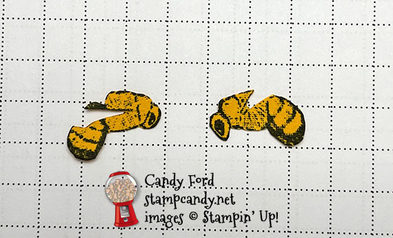 - the same two bees in Tuxedo Black Memento ink onto a scrap of Mango Melody CS