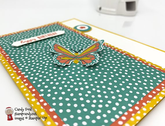 Welcome to the 04-2019 Spring Fling edition of the OSAT Blog Hop! For my projects, I used a color combination I remember being very popular in a previous Spring catalog: Bermuda Bay, Calypso Coral, and Crushed Curry. I used the Tabs for Everything stamp set for the sentiment and the Butterfly Gala stamp set for, you guessed it, the butterflies.