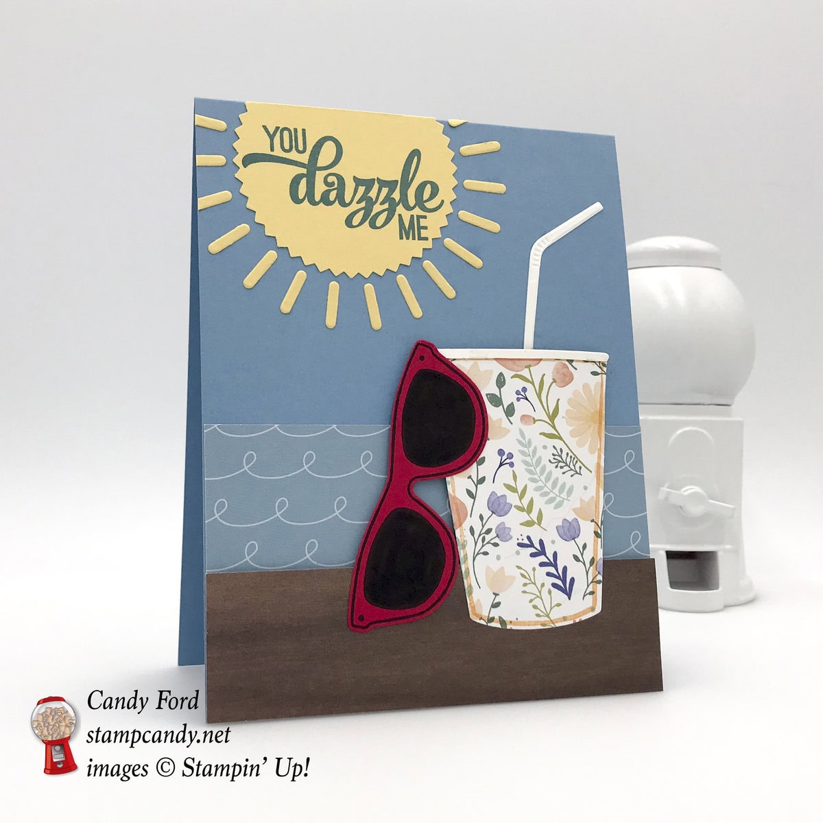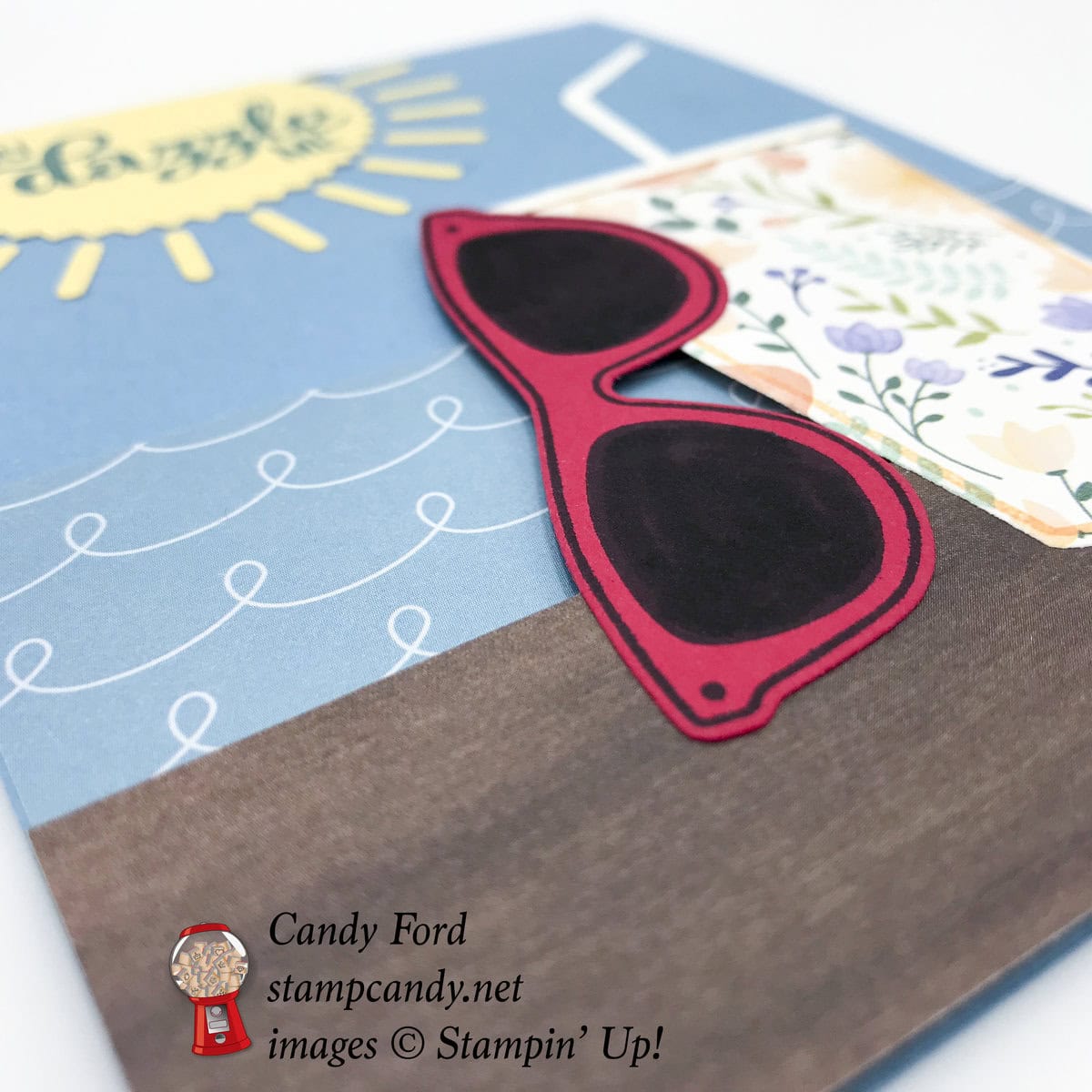Candy, you definitely can’t walk on, or in, the sunshine with out your sun glasses and a frosty beverage is another sunny day must have. I think you have captured all the things you need for a pleasant Spring day and put them in this card. I guess that’s why you’re a Rock Star. Awesome job Candy.