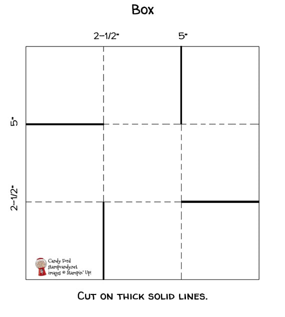 - Basic Black CS cut to 7-1/2″ x 7-1/2″ and scored at 2-1/2″ and 5″ in both directions