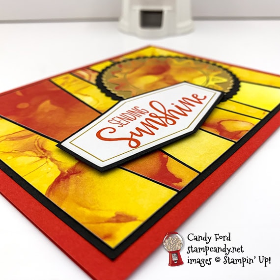 - matted sentiment adhered over strips and sun using Black Stampin’ Dimensionals