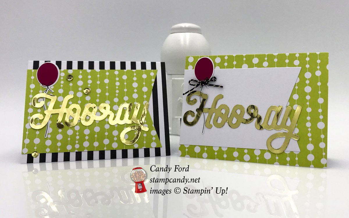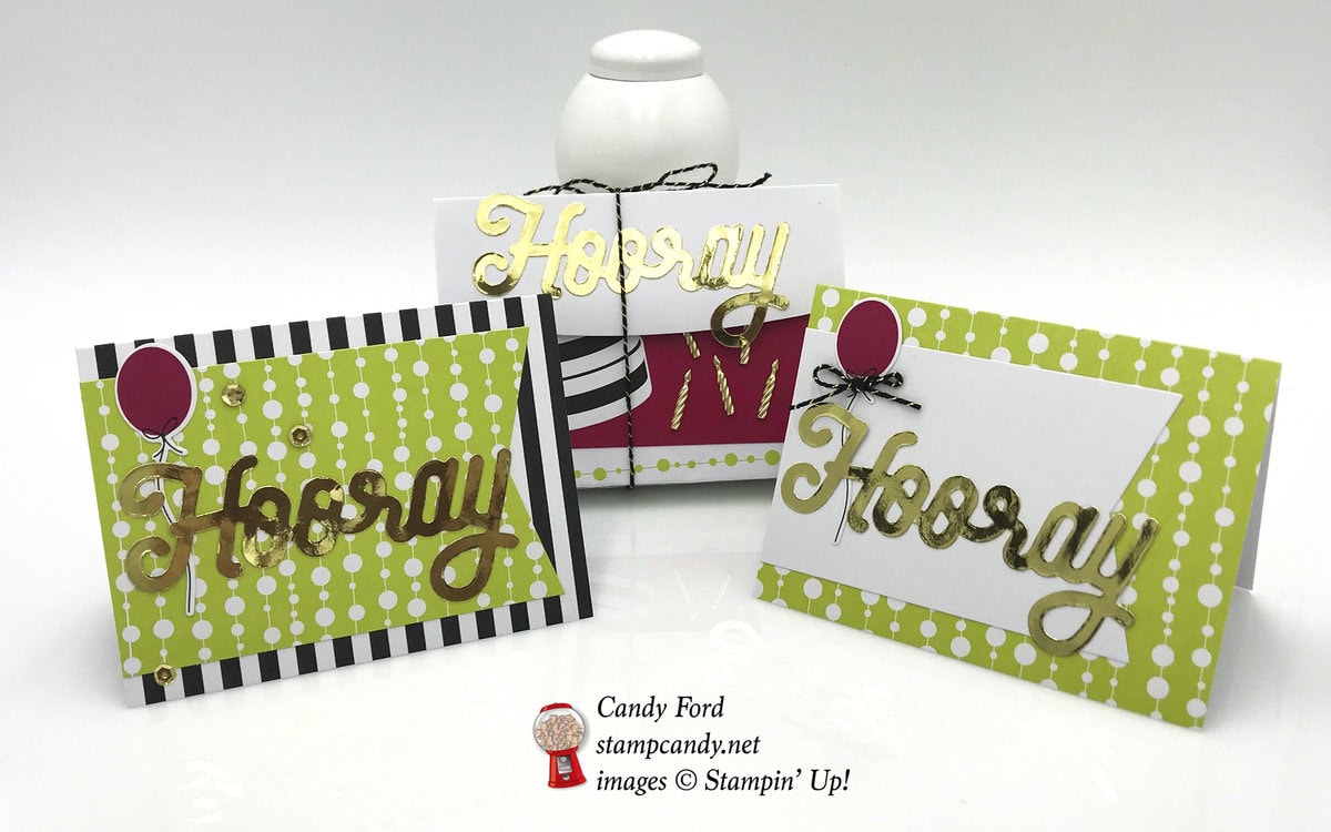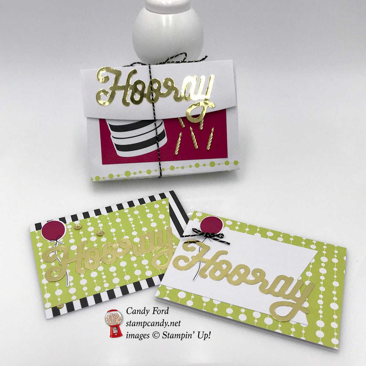 I love your adorable note cards and note card holder, Candy! I’m glad you shared the tip for using the embossing buddy to get the stickiness off the back sides of the Hooray sticker, too. 😉