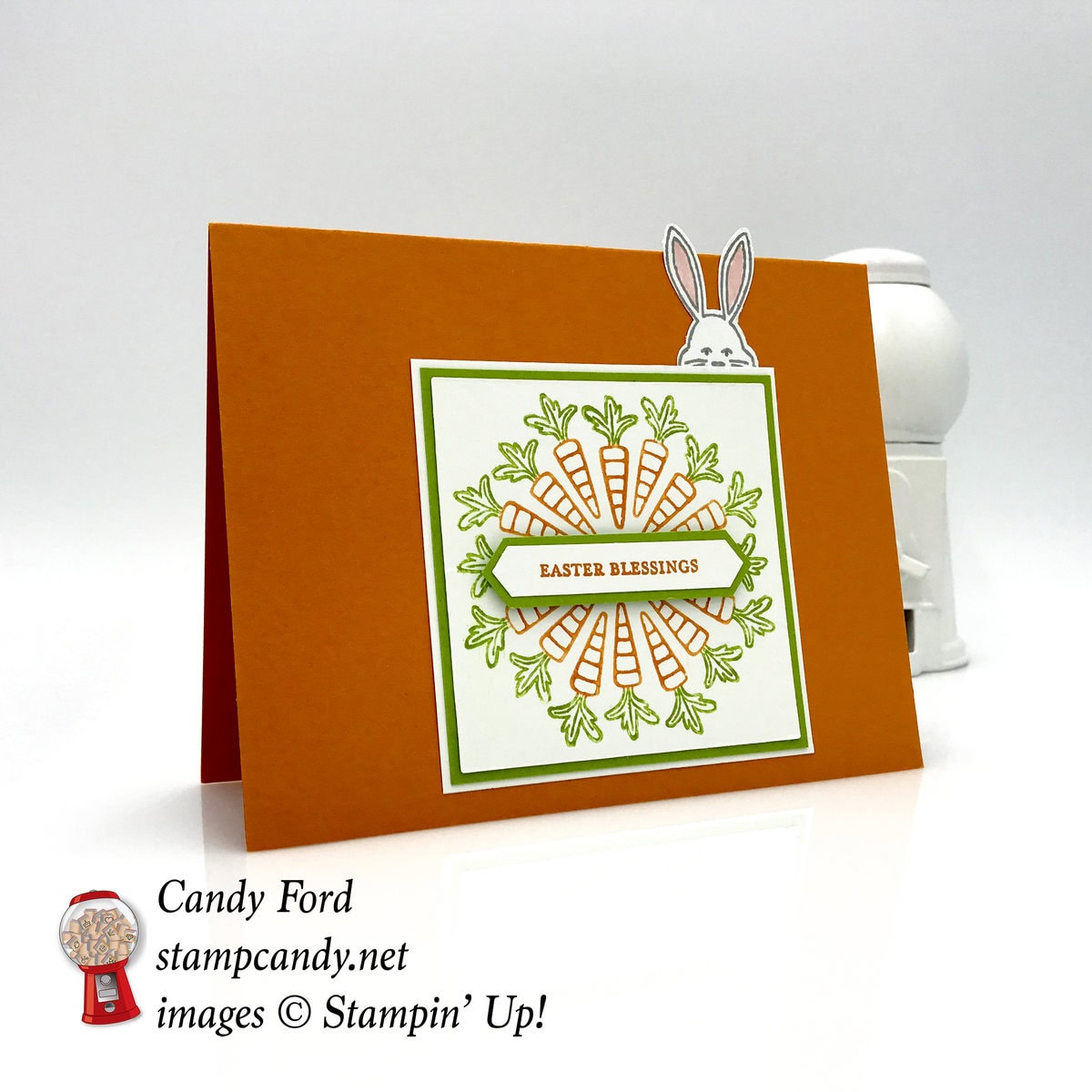 Today I’m sharing another sample card I made for the Stamparatus wreath demonstration I did at the Stamp or Dye group gathering this month. You can see my post about the gathering here. I used the Best Bunny bundle (Best Bunny stamp set & Bunny Builder Punch) and the Itty Bitty Greetings stamp set to create this Easter card. You can see how to stamp the wreath using a Stamparatus on my previous post here.