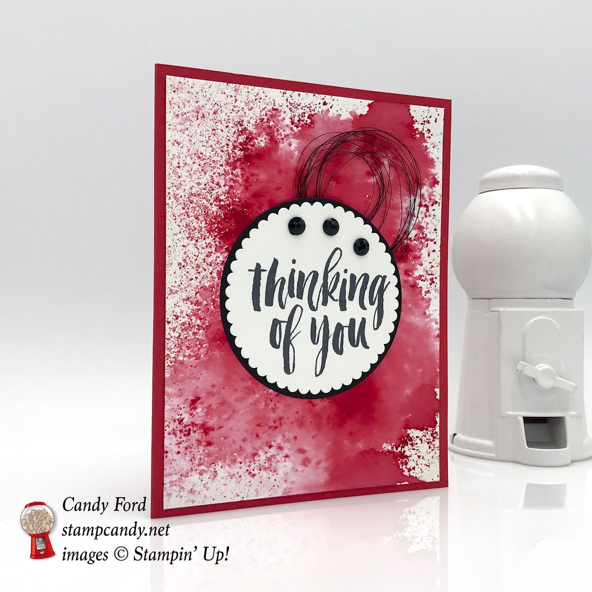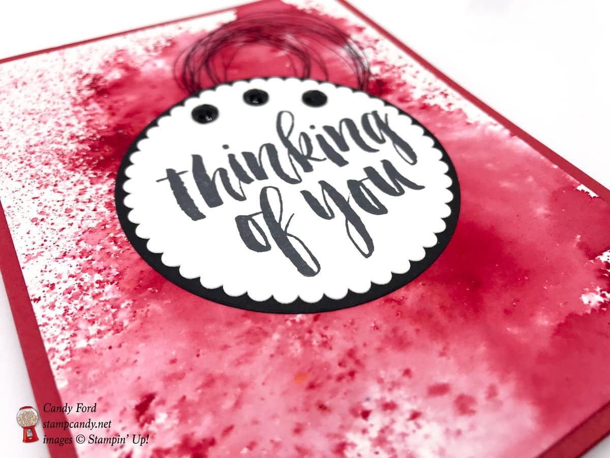 Today’s card was made using the Rooted in Nature stamp set and Brusho Crystals. Just look at how close the Brilliant Red crystals and Lovely Lipstick are in color. It’s a really easy card, but packs a visual punch.