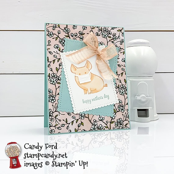 Welcome to the Candy Hearts Blog Hop for April 2020! This month we are featuring projects for Mother’s Day. I wanted to make something that reflects this particular Mother’s Day, during the COVID 19 pandemic. That’s when I decided on the sweet little pig from the This Little Piggy stamp set, because I had seen someone else put a mask on her/him, and I thought it was just adorable. I took the colors from the Bird Ballad Designer Series Paper I used for the background layer: Petal Pink, Pool Party, and Whisper White. Be sure to hop around to all the stops, because you don’t want to miss any of the great projects from the Candy Hearts! I can’t wait to see what they share!