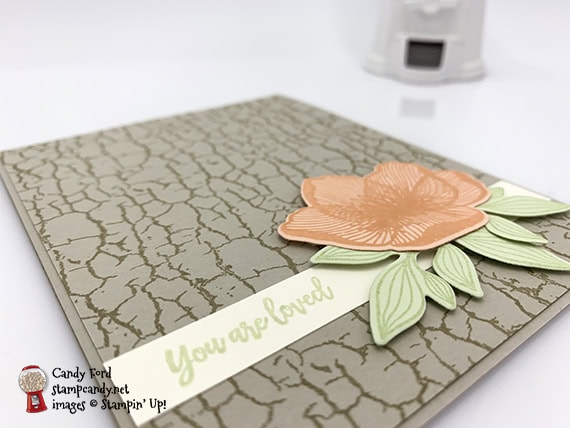 For today’s card, I used the Beautiful Promenade bundle and Crackle Paint stamp set along with card stock and ink in the muted colors of Sahara Sand, Petal Pink, Soft Sea Foam, and Very Vanilla. It’s very simple, and very sweet. I hope you like it.
