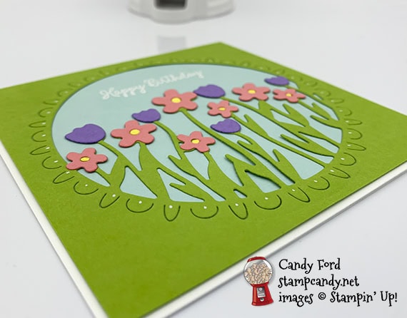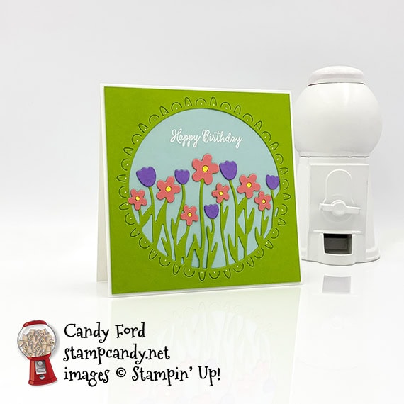 What says Spring more than brightly colored flowers? I used the Sending Flowers Dies to create this flowery, square, birthday card.