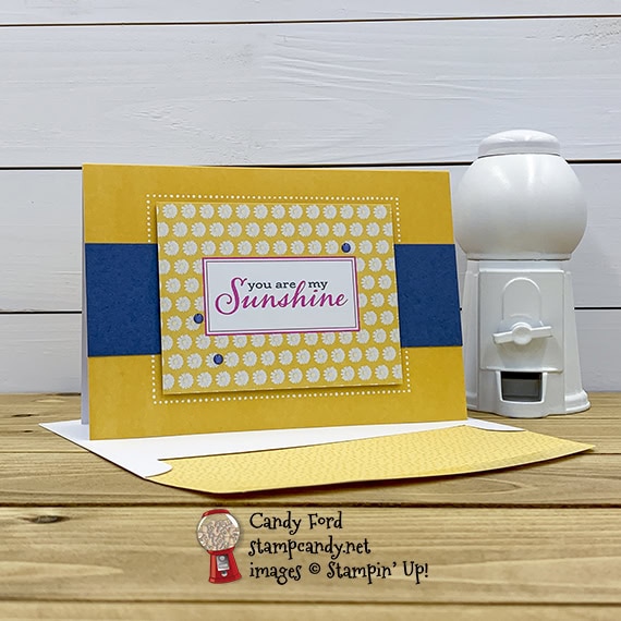 I’ve just gotta say that I really love the 2020-2022 In Colors. So of course, I love the Flowers for Everything Suite, which includes all five of them. When I broke into my Flowers for Everything Memories & More Cards & Envelopes and my Flowers for Everything Memories & More Card Pack, I immediately fell in love. The variety is amazing – there are even Christmas cards! – and they make it so incredibly quick and easy to create a pretty card in no time. Today I’m sharing one that I made using one of the Bumblebee card bases and envelopes. I added a card from the M&M card pack, a strip of card stock, and 3 enamel dots. That’s it!