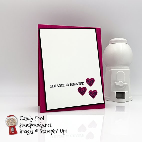 Just because it’s after February 14, that doesn’t mean you have to stop using your Valentine products! I used the Heart to Heart stamp set to make this card that be given any time of the year. This card is just stamps, ink, and paper – so quick and easy!