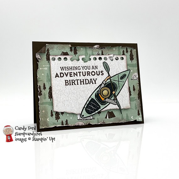 This DSP turned out to be a sleeper kind of DSP for me. I love what you did with it, and the torn paper really adds to the kayak, almost like rapids. Great card!
