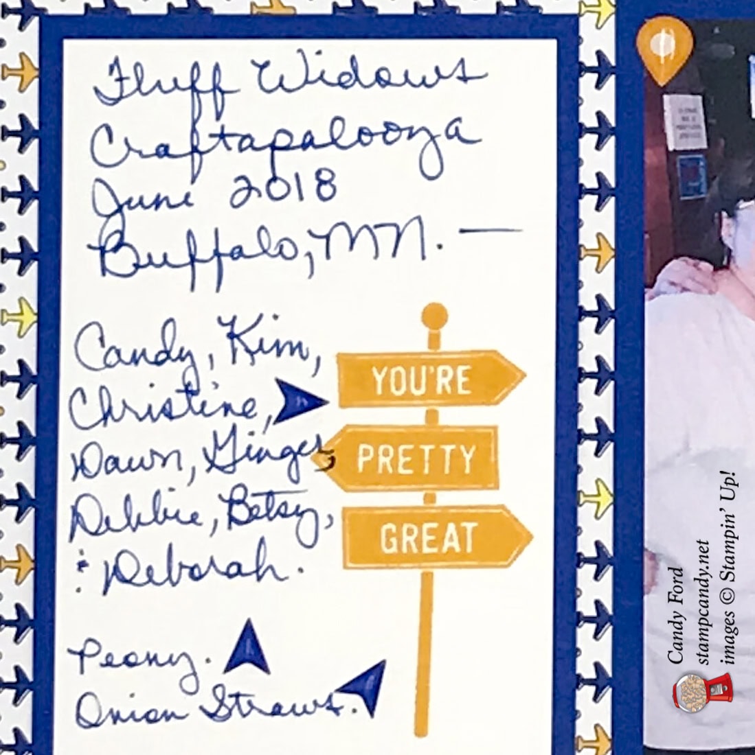 This month on the OSAT Blog Hop, we are featuring scrapbook page layouts. I think a lot of people think of Stampin’ Up! products as only for card making. Of course, they do make amazing cards, but they can also be used for scrapbooking, or memory keeping. I’ve used the Best Route suite to create a scrapbook page and coordinating cards .