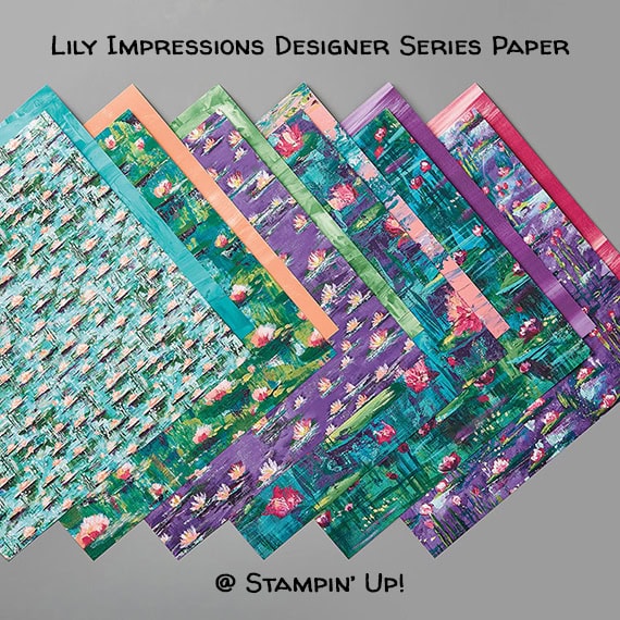 - lily, lily pad, and sentiment adhered onto the DSP layer using Stampin Dimensionals