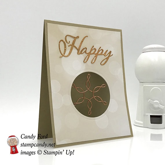 Today I’m sharing a window card I made with the All is Bright Designer Series Paper, Merry Christmas to All bundle, Layering Circles Framelits Dies, and Snowflakes & Stars Wire Elements. The key to this card is to cut through both layers of paper at the same time before you adhere them together. That way you can hang the snowflake with copper thread and hide where the thread is adhered to the card.