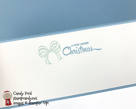 - sentiment in Balmy Blue ink onto the Whisper White CS for the inside