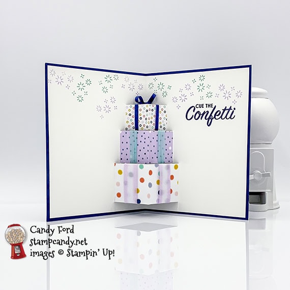 I used some products from the Playing With Patterns Suite Collection along with the Happiest of Birthdays stamp set and the Stitched So Sweetly Dies to create today’s fun pop up birthday card.