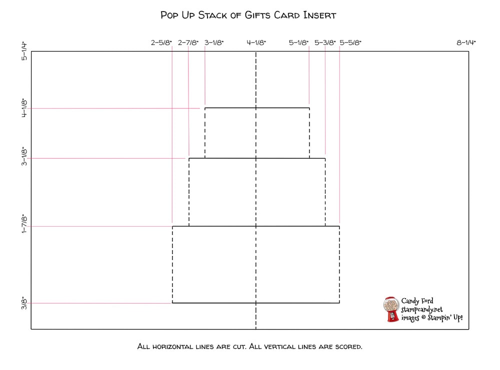 - Whisper White Thick CS cut to 8-1/4″ x 5-1/4″ for the insert, then cut and scored according to the diagram below