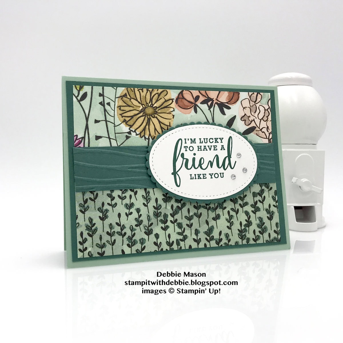 My friend, and fellow demonstrator, Debbie Mason and I did a card swap just between the two of us. Today I’m sharing three cards she made using the Share What You Love Suite of products.