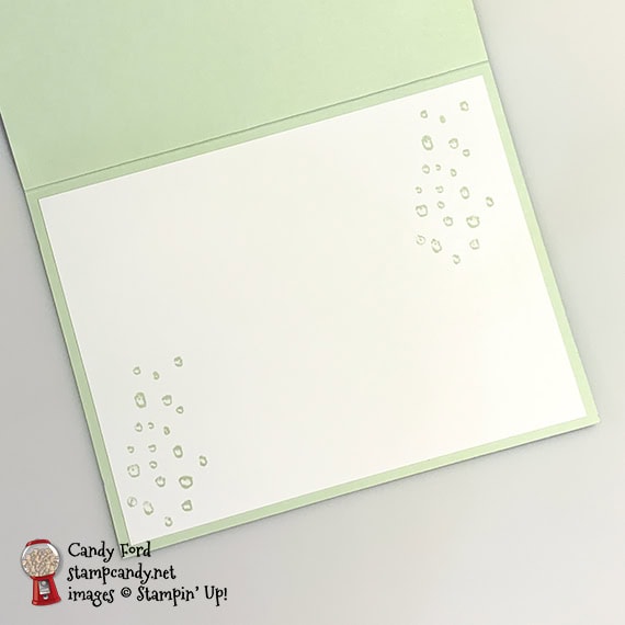 - droplets in Soft Sea Foam ink twice onto the Whisper White CS for the inside of the card base