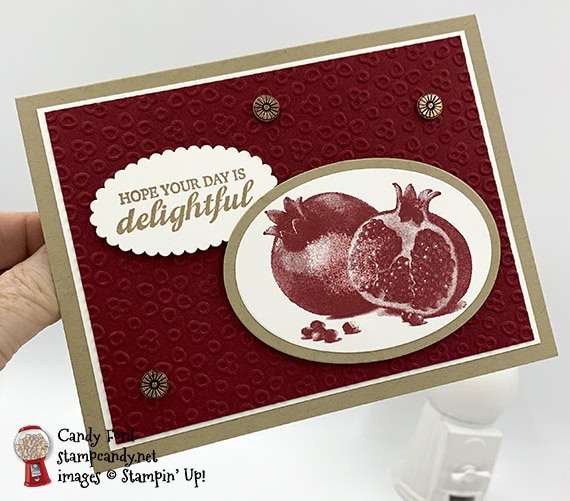 - pomegranate image in Cherry Cobbler ink the Whisper White CS for the inside of the card base