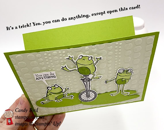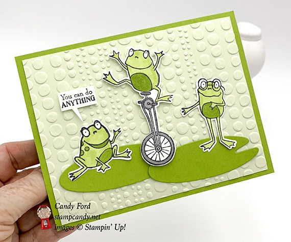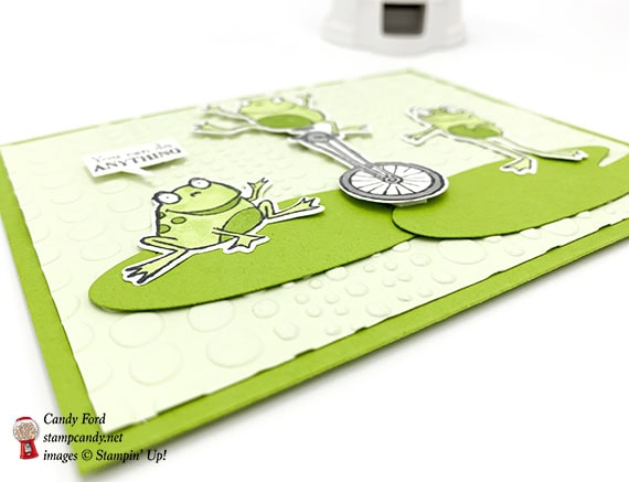 - frog on unicycle adhered over the top using Stampin’ Dimensionals