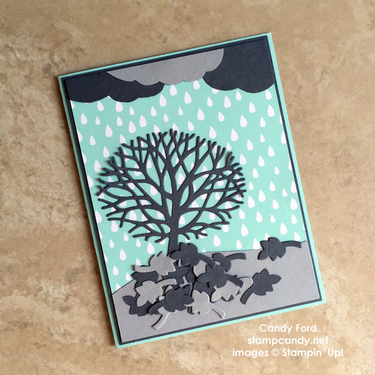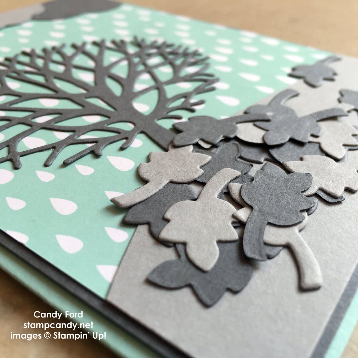 I used the dies to cut the tree and some leaves from Basic Gray card stock, and more leaves from Smoky Slate CS.