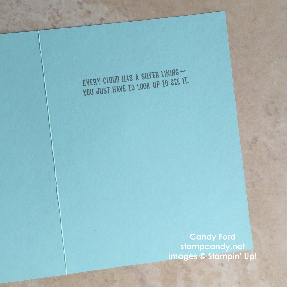 I stamped the sentiment, from the Sprinkles of Life stamp set, inside the card with Smoky Slate ink.