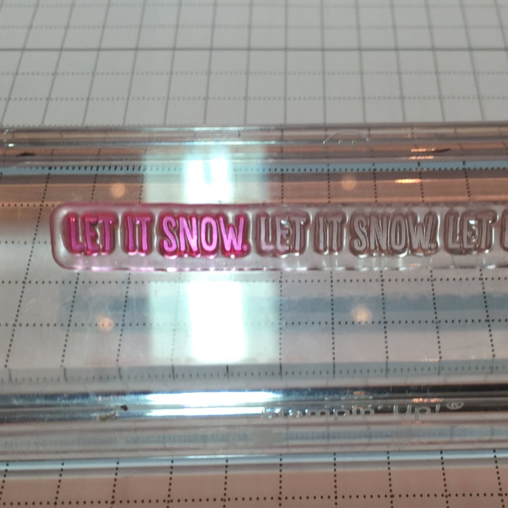 The teeny tiny Real Red sentiment in the corner is from the Happy Scenes stamp set. The stamp says “Let it snow. Let it snow. Let it snow.” but I only wanted one “Let it snow.” Some stamps would need to be masked, but this one was very easy to ink up at just one end.