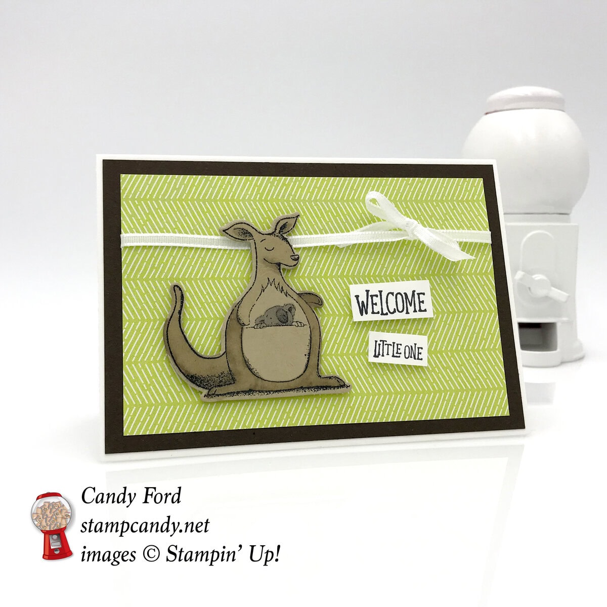 Today I’m sharing a baby card I made using the Animal Expedition suite of products. It’s really quick and simple, with just a little coloring on the kangaroo and koala. It’s a 3-1/2″ x 5″ note card, which you can buy pre-cut and scored, so that makes it even quicker.