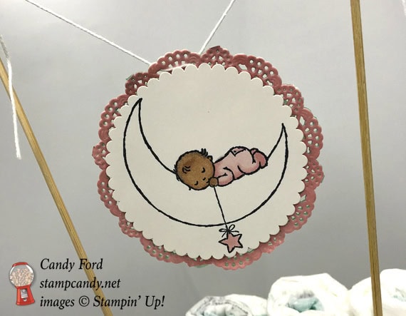 adhered a baby image to each side of the doilies using Stampin’ Dimensionals