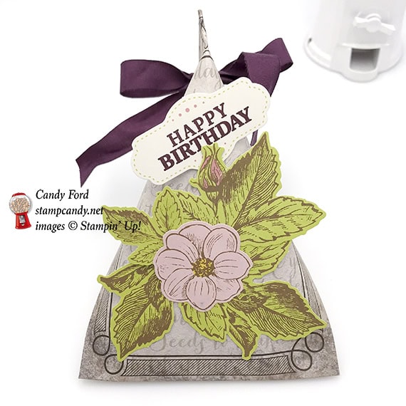 - birthday sentiment in Fresh Fig ink onto one of the precut labels