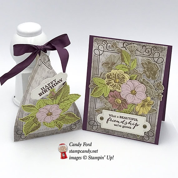 When I saw the gold and white note cards in the kit, I knew I had to pair it with one of Stampin’ Up!’s Striped Treat Bags.