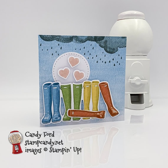 - clouds and raindrops in Basic Gray ink along the top of the front of the 3-1/2″ tall card