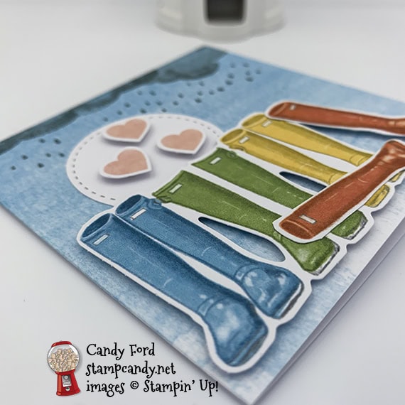 - die cut of 4 pairs of boots adhered, overlapping the sentiment, using Stampin’ Dimensionals