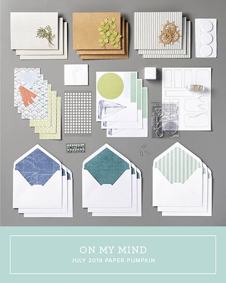 It’s time for the PPP July 2019 Blog Hop! This month’s kit is called On My Mind and it coordinates with three suites in the annual catalog. Three! There’s no end to the project possibilities with this kit.