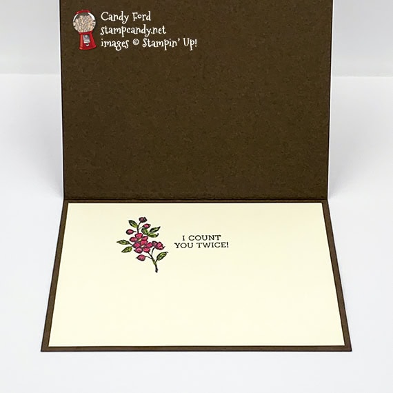 - Whisper White CS cut to 4″ x 5-1/4″ for the inside of the card base (Oops! I forgot to photograph the inside.)