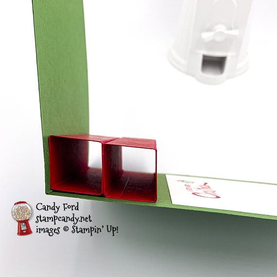 - Whisper White CS with inner sentiment glued onto the inside of the card base, in front of the Real Red boxes
