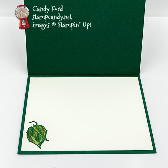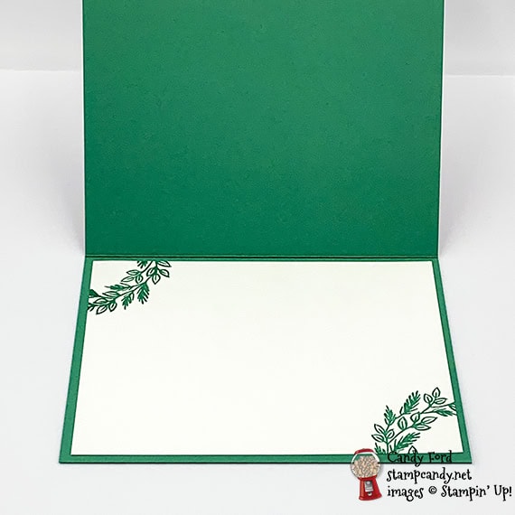- wreath in Just Jade ink onto two corners of the Whisper White CS for the inside