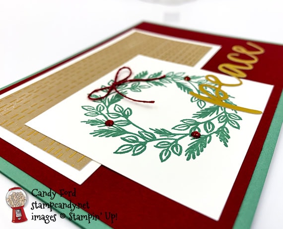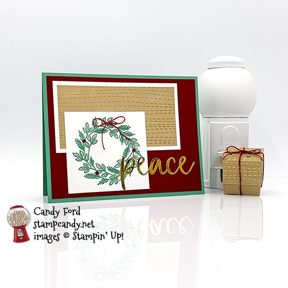 - wreath in Just Jade ink onto the 2-3/4″ x 2-3/4″ Whisper White CS layer
