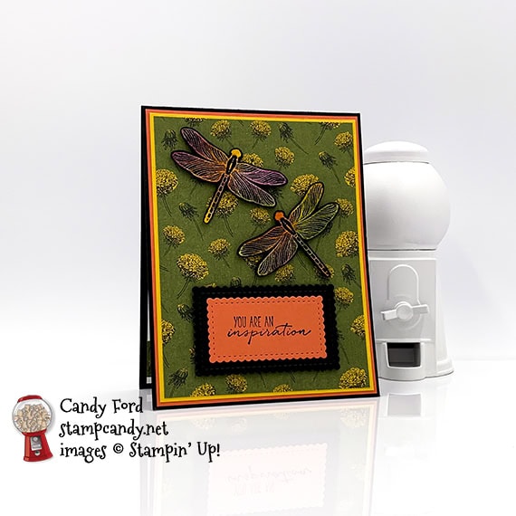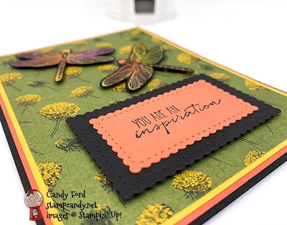 Today I’m giving you a sneak peek of the new Dragonfly Garden stamp set and Dandy Garden Designer Series Paper. As a Stampin’ Up! Demonstrator, I got to order the Dandy Garden Collection this month, instead of having to wait until January! It’s one of the many perks of being a Demo.