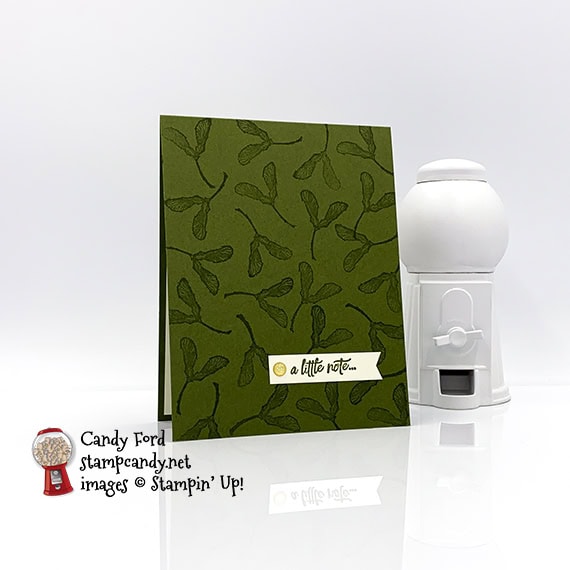 - samara in Versamark ink all over the front of the card base (You could use Mossy Meadow ink if you wanted it to be darker.)