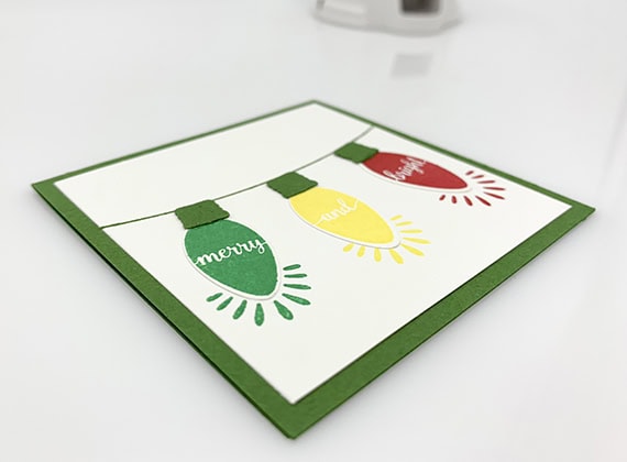 Mini cards are great to attach to gifts or to send little notes. Today’s card is 2-3/4″ x 2-3/4″, which fits perfectly in Stampin’ Up!’s 3″ x 3″ Envelopes. I used the Making Christmas Bright Bundle (Making Christmas Bright stamp set and Christmas Bulb Builder Punch) to create this sweet little card in just a few minutes.