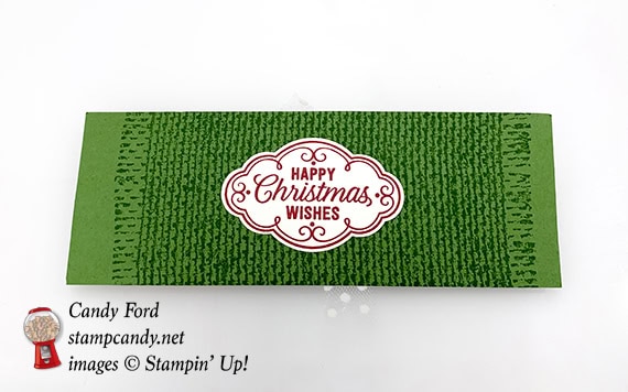I used the Flourish Filigree and Burlap stamp sets to decorate this simple candy cane holder. It’s an easy little gift you can whip up in a jiffy.